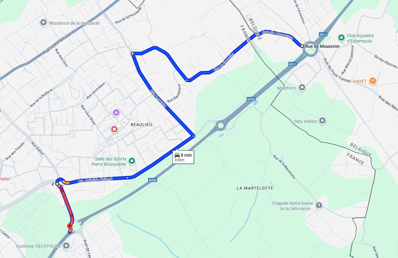 Une déviation sera mise en place pour tous les véhicules. Cette déviation est valable dans le sens France vers la Belgique et inversement dans le sens Belgique vers la France. Celle-ci empruntera l'itinéraire suivant : Giratoire de l'Eurozone, avenue Aristide Briand, rue de Beaulieu, rue Leruste, rue de la Boutillerie, rue du Gauquier (jusqu'au bout de la rue) pour arriver rue de Mouscron en Belgique et enfin giratoire en Belgique pour accès à la voie rapide.