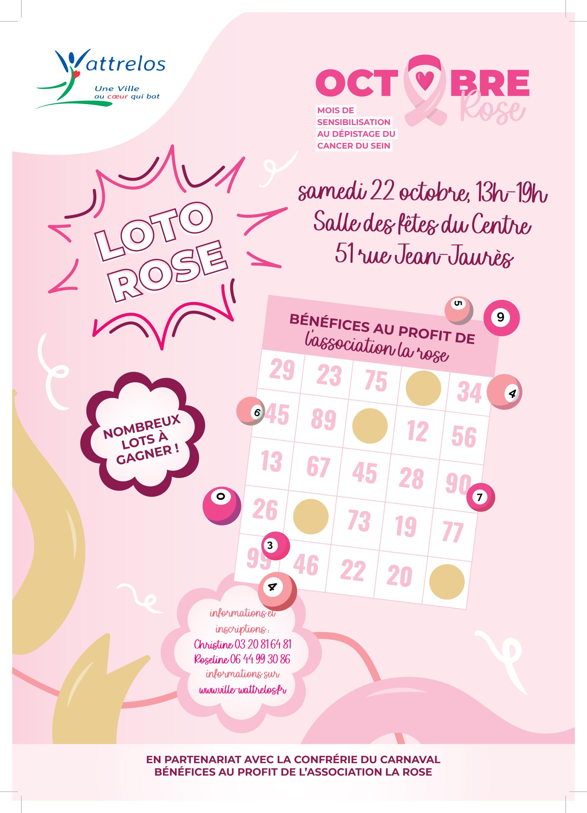 - Samedi 22 octobre de 13 h à 19 h : loto rose à la salle des fêtes du Centre